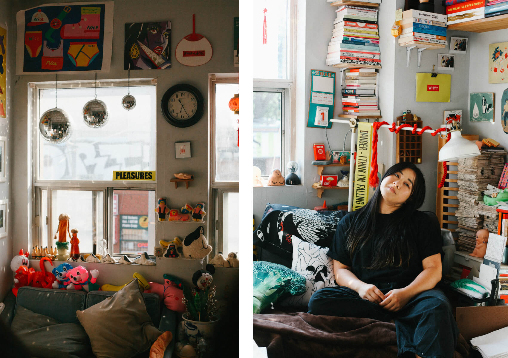 Ness Lee’s apartment is a large collection of things. Some are things she’s created by herself, like the ceramic pieces spilling out of the drawers of her studio, but others are small gifts from her friends that have become themes in her space: vegetable-shaped pillows and stress balls propped up on the couch or hanging from a wall; small tortoise memorabilia in honour of her pet tortoise, Frank Ocean. She often mentions names of other Asian photographers and artists, people she says it seems like “everyone in the city” knows.